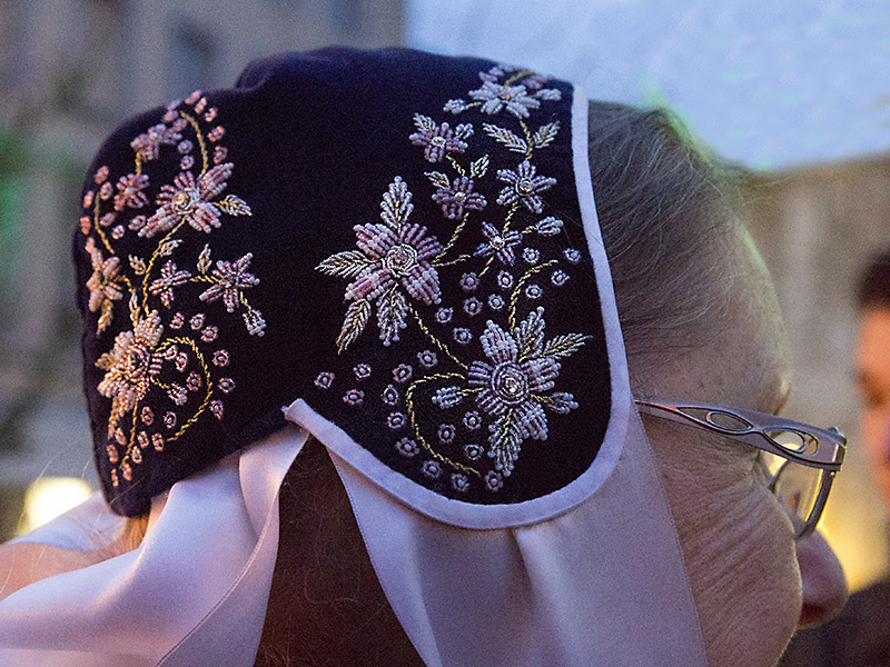 J'ai photographié ce tableau cet après-midi. Sauriez-vous dire quelle est en est la particularité ? ------------------------------------------------------------------------------- Voyons vos réponses: LaGuillaumette dit : de la soie : OUI, mais pas que! Françoise propose tapisserie et feuille d'or : NON Sylvie pense à la tapisserie d'Aubusson et fils d'or : NON Puis nous dit que le fond est une feuille d'or : NON -------------------------------------------------------------------------- Quelques indices: Un indice: le tableau mesure 3m x 1 m environ. Second indice: la richesse se cache où on ne l'attend pas... Troisième indice: un rapport avec l'herbe folle Quatrième indice: les brodeuses de Certiferme sont parties aux champs On cherche encore ! ------------------------------------------------------------------------------------------- On a trouvé!!!! Il s'agit d'extraordinaires broderies de paille, le médaillon central n'est pas non plus une tapisserie, mais une réalisation faite de minuscules perles de verre et de nacre... Pour en savoir plus: CLIC ! Bravo à LaGuillaumette, à Mounaque et à Sylvie!! Et un grand bravo à Yves g3921, que je soupçonne d'avoir déjà arpenté le plateau de Nozeroy...