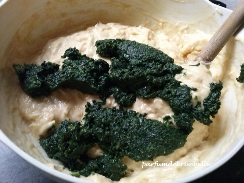 90 g de magret de canard séché et fumé ( 1 plaquette) 60 g depistache décortiquées 75g de beurre 200 ml d'eau 2 CC de levure boulangère spécial pain 1 CS de sucre 1 CC de sel faire le levain (1CC de levure, 10 ml deau, 10 g de farine), mélangez et laissez reposer 2 h à température) Dans un mélangeur, versez l'eau, le beurre pommade, le sel, le sucre. Ajoutez la farine, la deuxième CC de levure sans qu'ele soit en contact avec le sel, et enfin le levain. Mélangez la pâte pendant 10 minutesL Laissez reposez 30 minutes recouvert d'un torchon ( température ambiante 25°C) Mélangez à nouveau pendant 10 minutes, puis sur un plan de travail. Fleurez de farine, déposez votre pate. Etalez un peu votre boule et dispersez pistaches et magret coupés en petits morceaux. Puis avec votre paume de main, ramenez le bord de la pâte vers vous pour incorporez pistache/magret. Déposez dans un moule beurré et fariné. Laissez reposez 2 heures environ sous un torchon humide. La pâte doit avoir doublé de volume. Dorez à l'oeuf. Cuisson 180°C, pendant 35 minutes environ. Contrôlez avec la pointe de couteau |