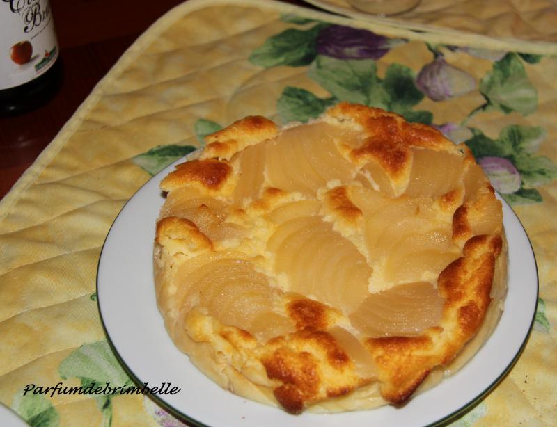 60 cl de lait 1/2 écrémé 4 CS de cassonade 90 g de semoule fine 90 g de sucre 75 g de beurre 2 oeufs entirs 1 CS d'alccol poire william's 1 boite 4/4 de poire au sirop Allumez le four th 6 (180°C). j'ai pris un cercle patissier de 24 cm de diamètre et mis un papier sulfu au fond en prenant soins de le laisser déborder comme pour une tarte.