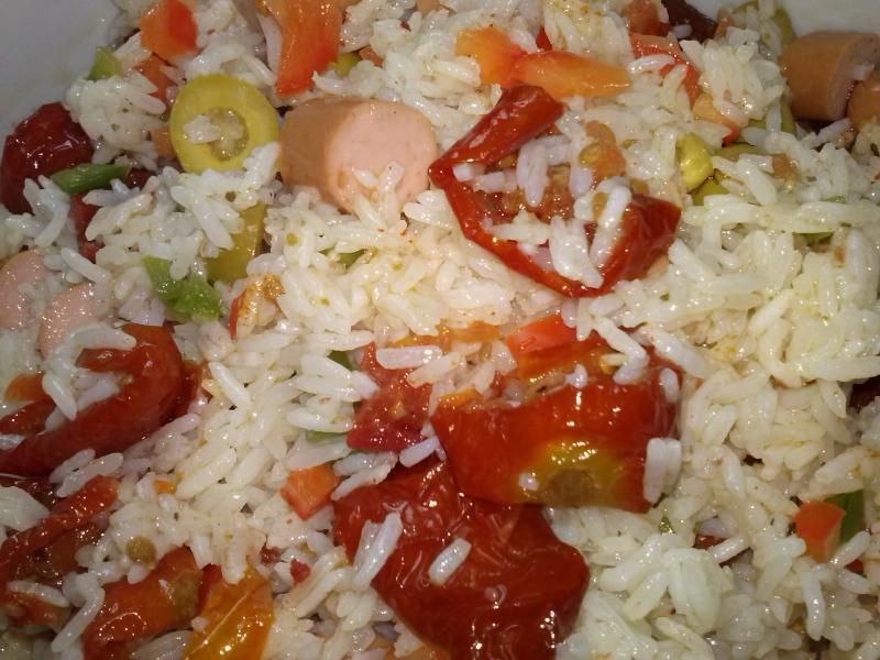 700 g de filets de merlan surgelé Picard 1 boite de crevettes conserve 2 oeufs ( dont le 2e on ne prendra que le blanc) quant au jaune il servira pour faire une mayonnaise 20 cl de crème en brique persil sel, poivre 1 CS de concentré de tomate Mixer votre poisson à peine décongelé. Ajouter la crème l'oeuf et le blanc, mixer. Ajouter le persil , salez-poivrez.. Prendre un papier sulfu , le mouillé en le froissant. Couvrez votre moule, quatre quart de ce papier sulfu humidifié. Divisez votre préparation en trois. - la premièe reste à l'identique, et la déposé dans le moule -la deuxième on incorpore les crevettes, et on la dépose sur la première - la dernière on ajoute le concentré de tomate. Comme cela vous diposez de trois couches. Rabattre votre papier sulfu. cuire au bain -marie. Four 210°C pendant 45 Minutes. Laissez refroidir à tempèrature et ensuite mettre votre moule avec la terrine au réfrigérateur jusq'au lendemain ( 24 à 48 h de repos). Riz Camarguais et sa ratatouille. Je confie la fabrication à mon tendre époux de cette ratatouille, Dans les légumes achetés, un piment long faisait parti de la farandole. Seulement, il l'a pris pour un poivron. Heureusement, il n'a utilisé la moitié. Car si le soleil, fait un peu transpiré , la chaleur du piment aussi. |