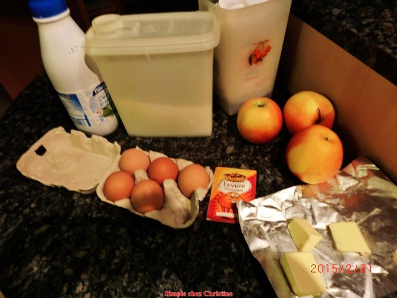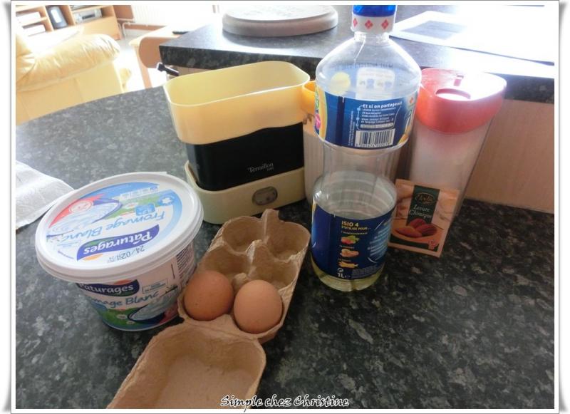 400 gr de farine 60 gr de sucre 2 oeufs 2 càs d'huile 1 pincée de sel 1 paquet de levure chimique