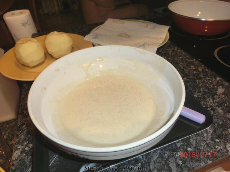 Nous aimons beaucoup les clafoutis, c'est vite fait et c'est toujours bon, avec des pommes qu'il faut manger. Coupez les pommes en lamelles