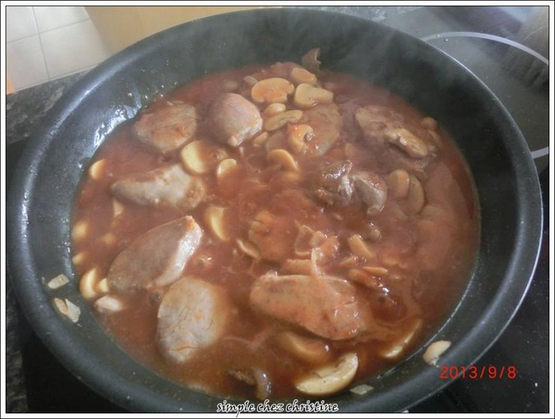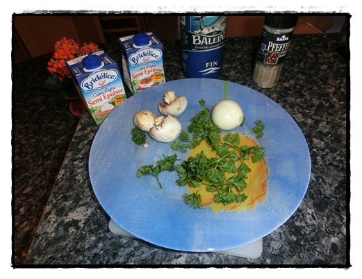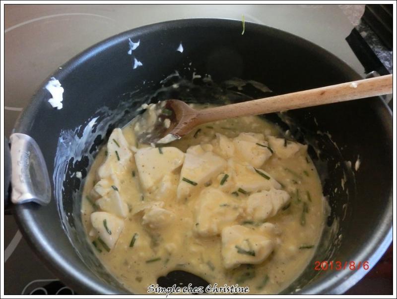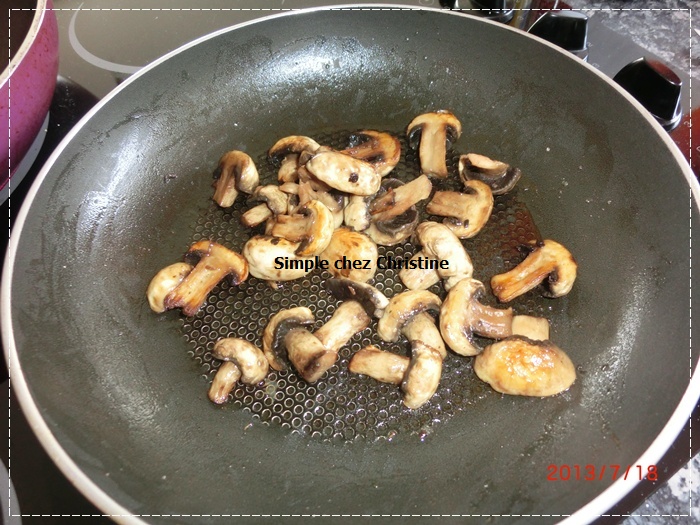 là voilà en petits morceaux dans une sauce béchamel avec une boîte de champignons.