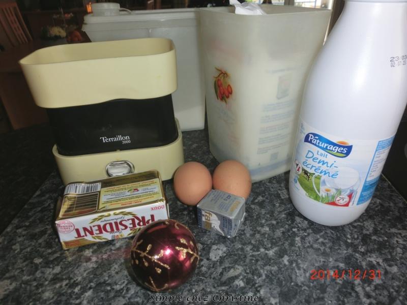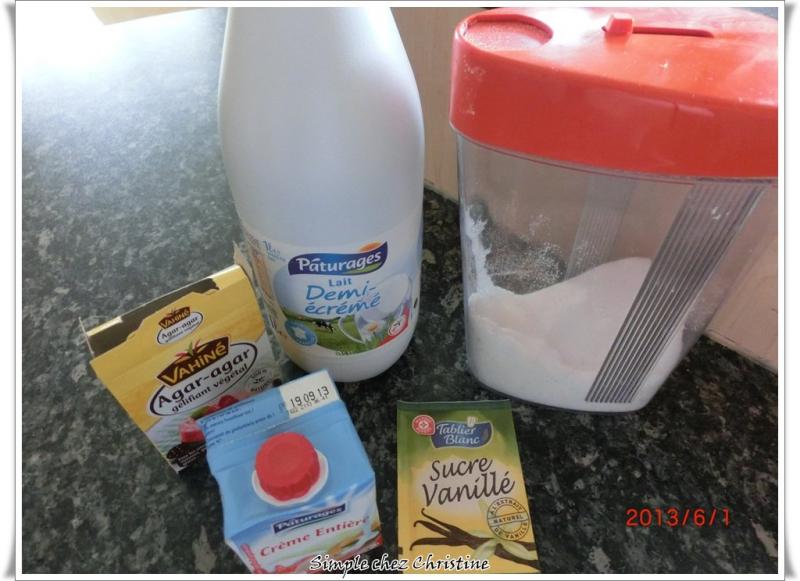 Je feuillete toujours mon livre de cuisine, de bonnes idées dans ce livre, finalement je les fais nature et chacun rajoute selon son envie confiture, fruits, miel etc... 1 litre de lait entier
