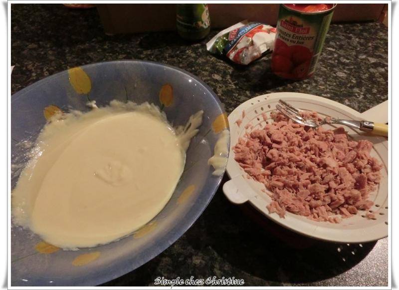 une boîte de thon naturel un boursin ail et fines herbes 1 càc de curry aneth poivre feuilles de brick