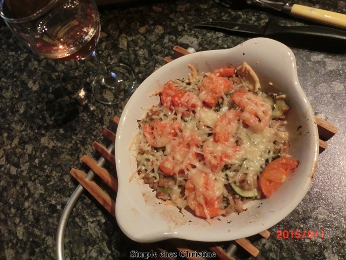 Une petite balade en vélo, je programme le four pour que le repas soit pret à notre retour, tomates et courgettes rondes farcies et un fond de riz.