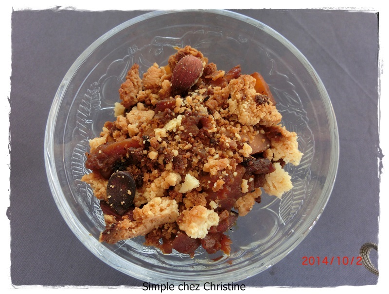 Faire cuire 10 mn à 200° C puis retirer le papier et continuer la cuisson 25 mn le dessus du crumble doit être bien doré et croustillant.