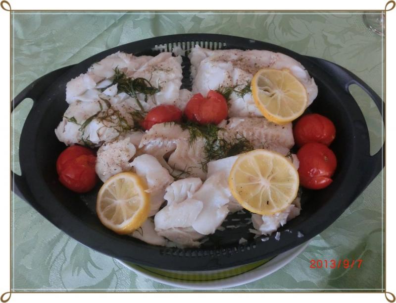 J'ai coupé les pommes de terre en rondelles, déposées dans des plats individuels, un peu de fleur de sel, pas trop..., j'ai mis du beurre salé, du persil, poivre. Au four préchauffé pendant 25 mn, pendant ce temps j'ai mélangé un peu de crême au fromage blanc, ajouté de la ciboulette. A la sortie du four, quelques cuillères de fromage blanc sur les pommes de terre, des dés de saumon fumé, un peu de citron. et hop à table !! et un petit coeur de tomates cerises
