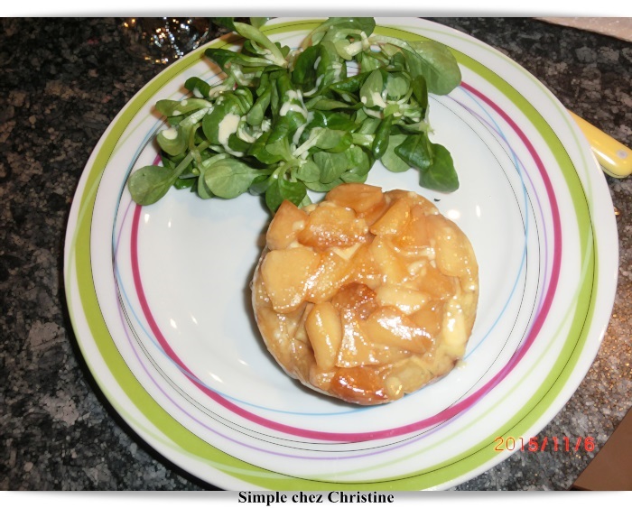 quelques pommes qui s'ennuiaient, une pâte à crêpe ordinaire, un peu de caramel au beurre salé, ce qui fait un bon dessert