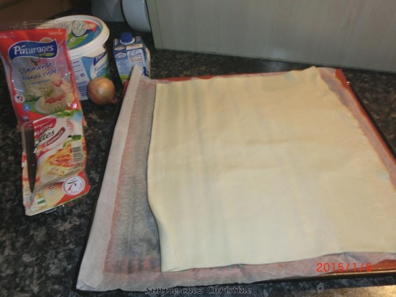 Déccoupez votre deuxième pâte feuilletée, la déposer sur la première, on peut aussi découper les 2 pâtes en même temps.