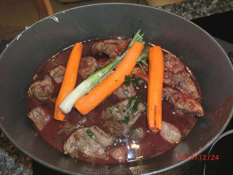1 kg de boeuf bourguigon j'ai fait revenir les lardons, j'ai réservé