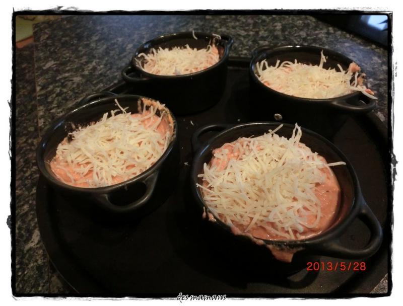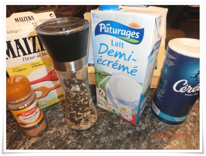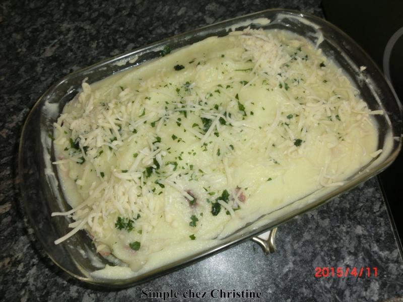 une sauce béchamel et du gruyère rapée et une trentaine de minute au four.