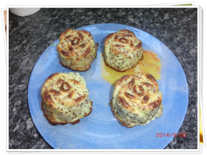 Pendant ce temps mélanger l'oeuf, gruyère crème persil et poivre Enrouler les tranches de lard dans des moules à muffin, verser l'appareil dans chaque empreinte, mettre au four préchauffé 25 mn. |