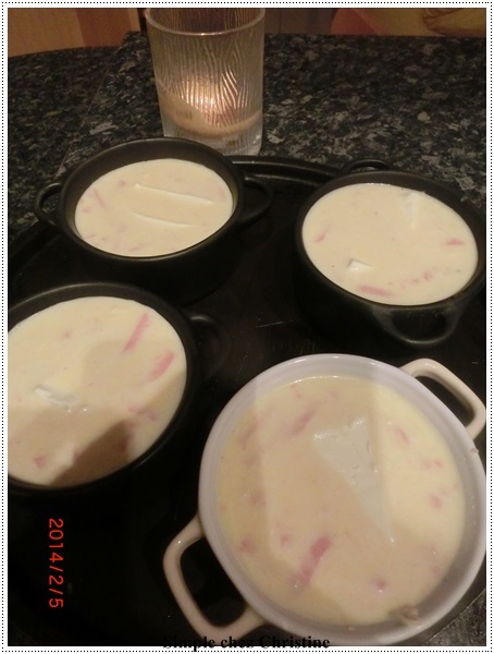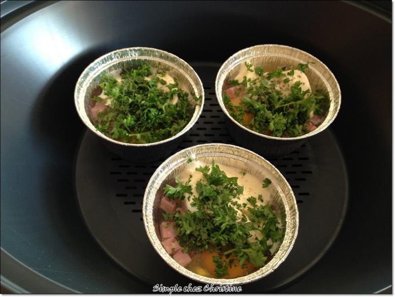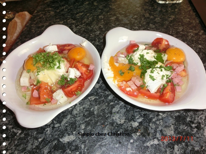 pour le temps de cuisson, à 240 °, pour mon four 3-4 minutes cela suffit, le fromage doit être fondu, le blanc d'oeuf cuite et le jaune coulant, mon jaune d'oeuf était un peu trop cuit.