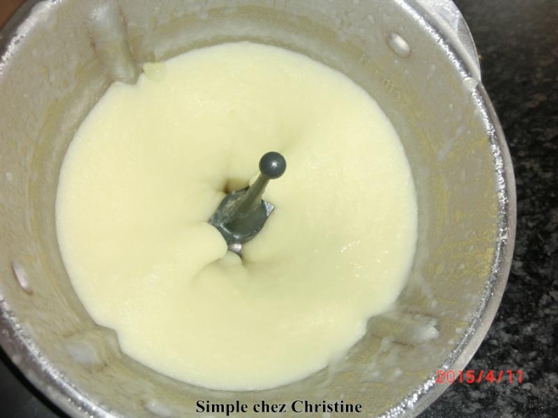 Battre le sucre et les oeufs jusqu'à obtenir une mousse blanche Faire une fontaine avec la farine et y ajouter progressivement le mélange oeuf sucre, ramener petit à petit la farine au milieu. Rajoutez le lait, la brique de lait de coco (facultatif j'en avais une)
