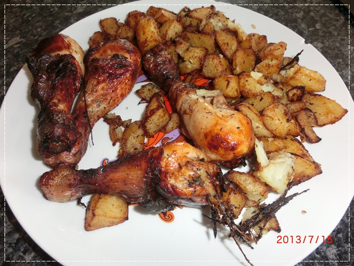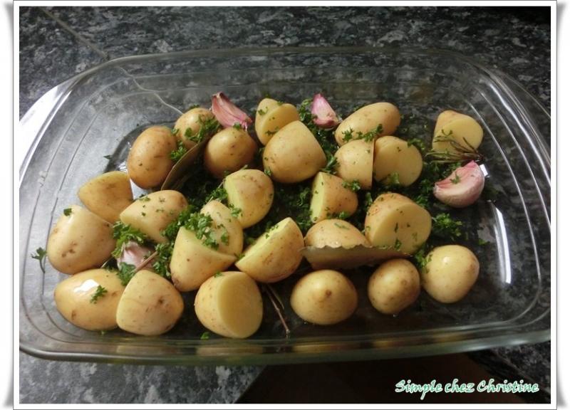 J'ai fait ces petites pommes de terre au four avec de l'ail entier, beaucoup de thym, persil, elles étaient super bonnnes et de bonnes odeurs dans la maison.