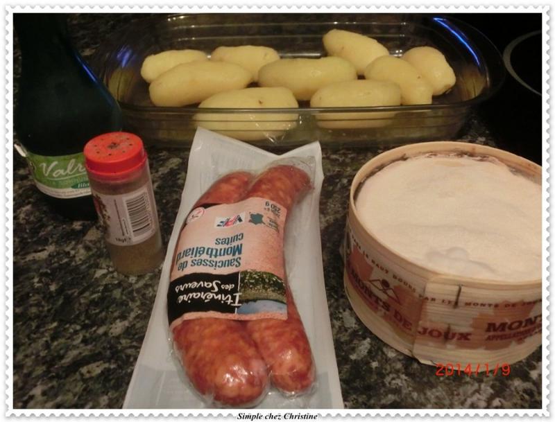 Mont d'Or du massif du Jura, fromage au lait de vache, un petit trou au mileu, une lisquette de vin blanc, recouvert de son couvercle en bois, et au four 1h, avec de petites pommes de terre vapeur