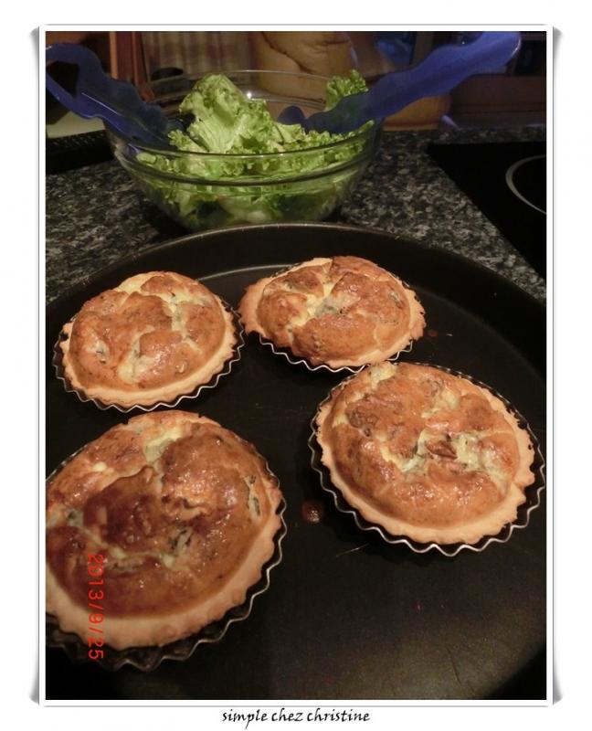 Pour 4 quiches un reste de légumes cuits vapeur, 2 oeufs 40 gr de farine 200 gr de lait 60 gr de cancoillotte sel - poivre - persil - ciboulette Préchauffez le four