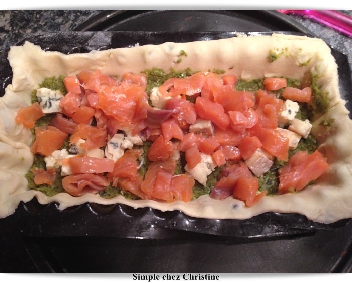 2 pâtes feuilletées pesto vert tomates séchées pignon de pain 1 jaune d'oeuf graines de sésame