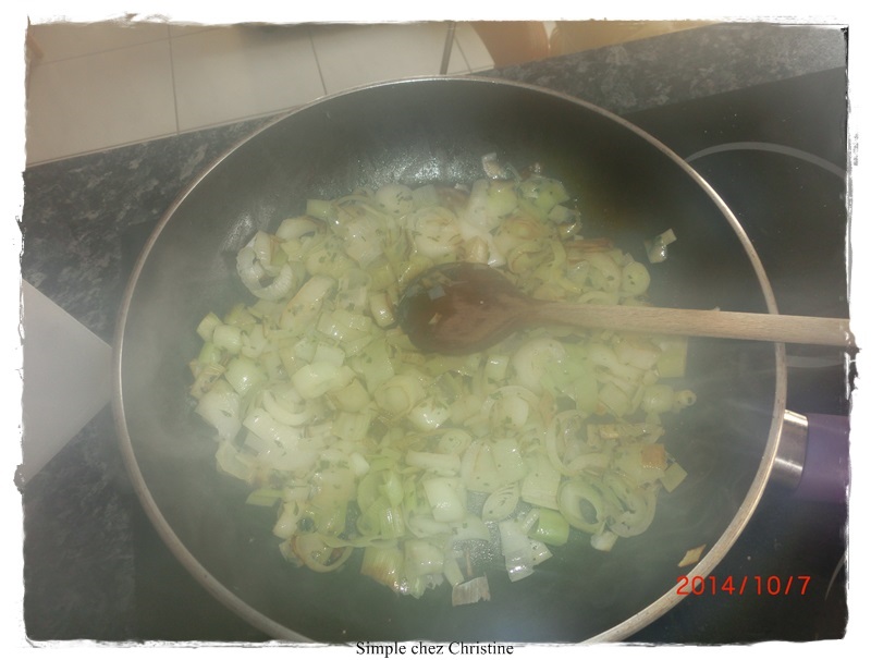 ensuite j'ai fait revenir ma viande, j'ai rajouté les poireaux et lardons,