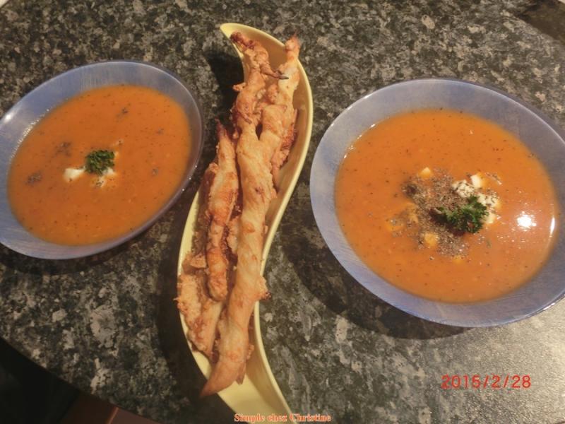 Les courgettes de notre jardin qui ont donné cet été à profusion sont maintenant dans nos assiettes, pour nous réchauffer par ce temps froid qui est arrivé d'un seul coup. Quelques tartines de pain 'sport' qu'on appèle dans une boulangerie, un pain avec des noix, noisettes, raisins secs recouvertes d'une tranche de St Nectaire, fromager femier de la région d'Auvergne au léger goût de noisette. Quelques minutes sous le grille du four, dégustez avec votre potage une lisquette de crème. On se régale !!