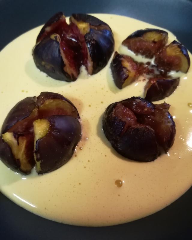 En entrée avec un peu de roquette ou à la fin du repas c'est toujours rafraichissant une bûche, un peu de crème et de la gélatine,du chèvre frais, des noix et des pistaches , selon vos envies, on peut même rajouter des noisettes 1,2,3 régalez vous |