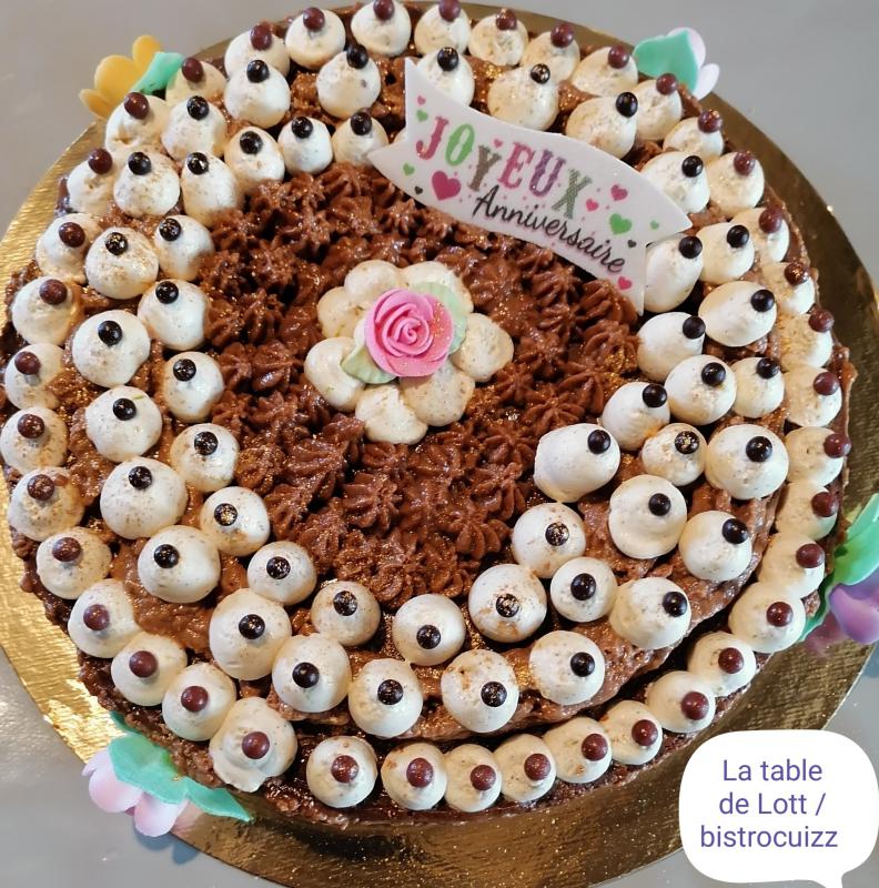 Un entremet 3 chocolats, biscuit chocolat et croustillant.