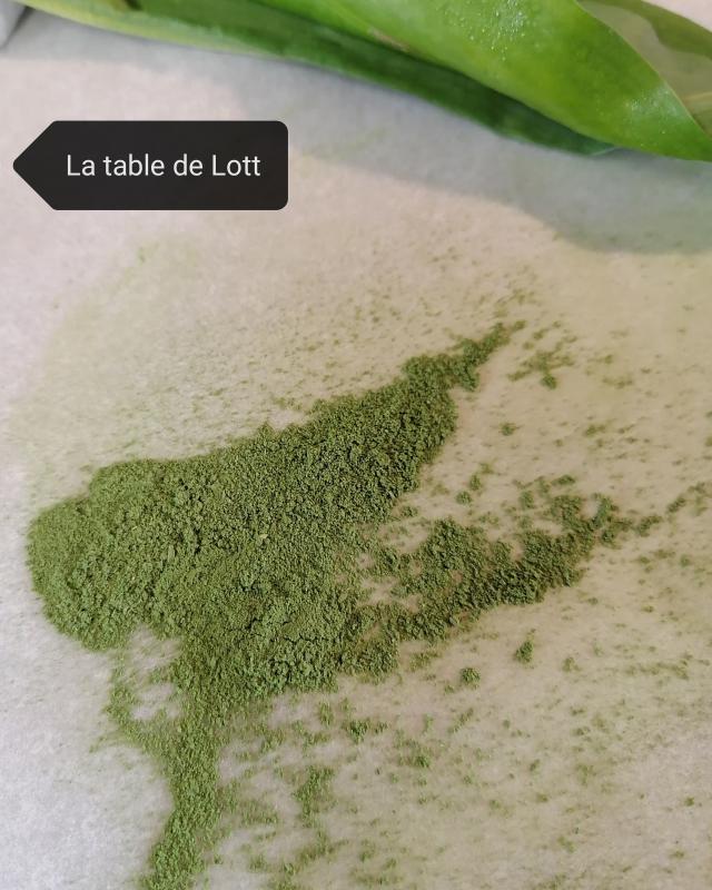 J'ai fait sécher les feuilles au déshydrateur, puis les feuilles ont été réduites en poudre dans un moulin à café !!