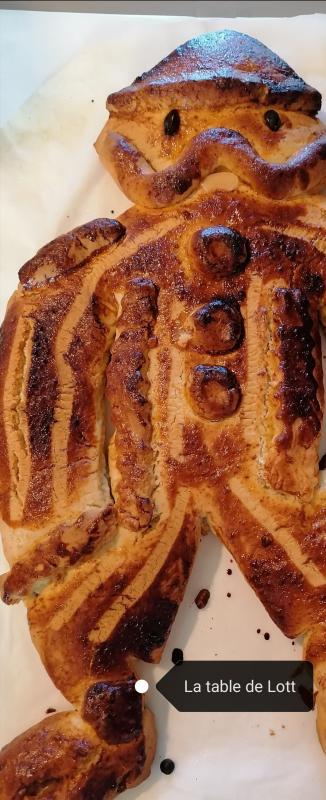 3 oeufs 150g de beurre ramolli 1/2 sachet de levure, quelques zestes d'oranges mélanger le tout façonnez à votre convenance (j'ai acheté un moule c'est bien pratique ! ) quelques raisins et le tour est joué ! 1,2,3 régalez vous! |