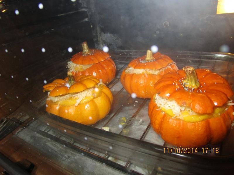 vider les potirons mélanger la pulpe avec un peu de crème , 3 oeufs, du curcuma,du comté sans compter!!! mettre le canard au fond de chaque potirons recouvrir du mélange mettre au four pour gratiner et le tour est joué |