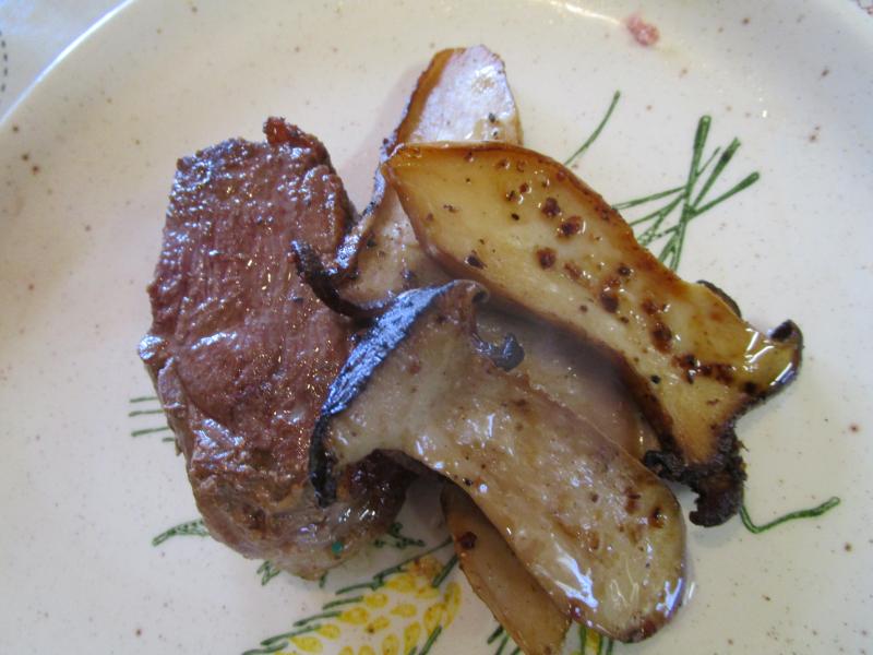 j'ai réalisé un soufflé de potimarron au caramel d'orange et curcuma j'ai fait cuire les cèpes avec le jus de magrets de canard, j'en ai réservé un entier que j'ai cuit à part plus longtemps à feu très doux pour la déco et voilà!! bonne semaine à tous