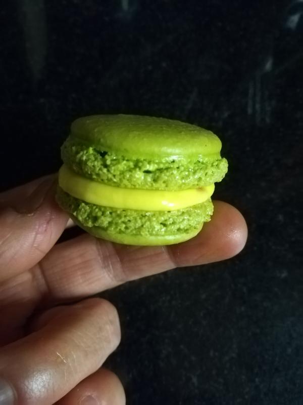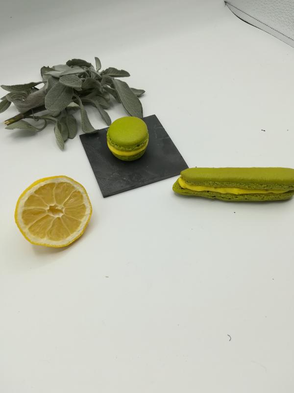 un essai : des macarons avec un crémeux de citron parfumé à la sauge