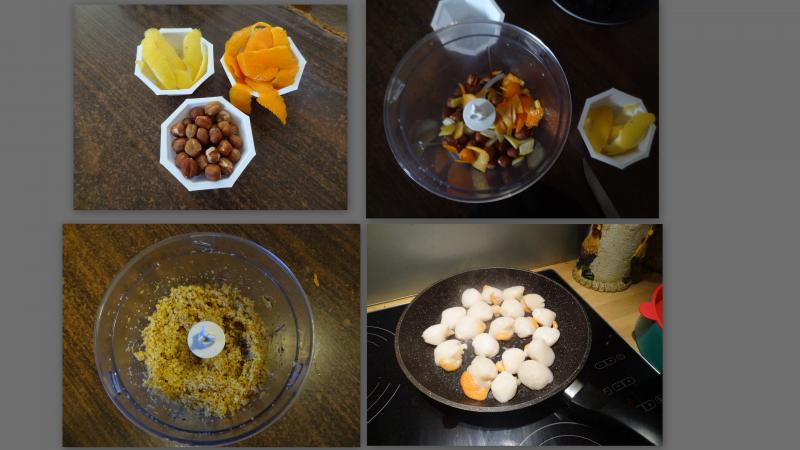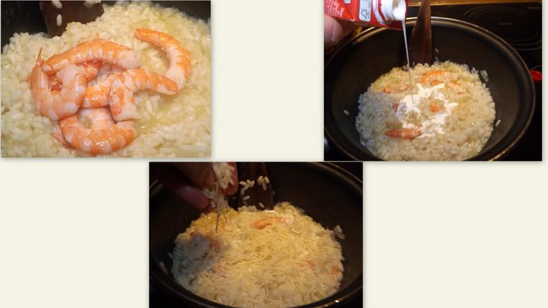 Dans une poêle à côté faire cuire vos coquille s saint Jacques vos quêtes de grosses crevettes sauvage et un petit morceau de morceau de cabillaud ou de saumon Les incorporer délicatement dans ,a sauce et laisser mijoter doucement remuer avec délicatesse Accompagner avec un ramequin de riz J avais mis 2 st jacques 2 queues de crevettes et un morceau de poisson,par personne