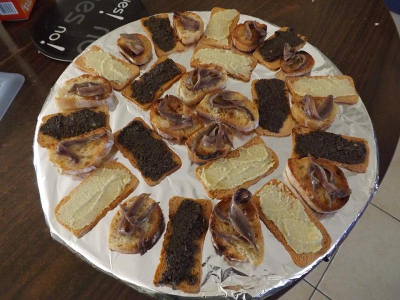 Grillez vos tranches de pain au grille pain les frotter avec une gousse d ail et y deposer un filet d anchois a l huile