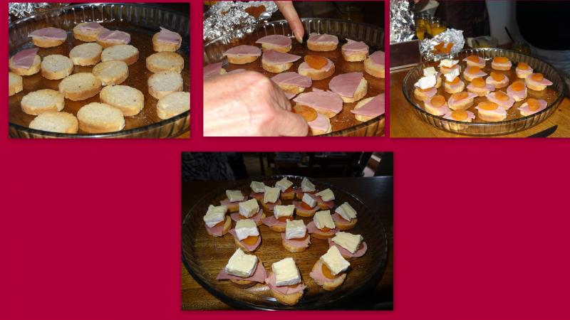 Prendre des pruneaux mi cuit les mettre a gonfler dans du vin blanc fruite et sucre.Les egoutter les denoyauter et inserer du foie gras ou magrets seches