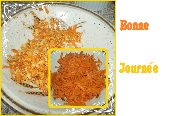 J'espère que vous avez passer un bon we de pâques. Un peu tard ,mais vous pouvez le faire toute l'année ce gâteau, il faut que je regarde la recette ou je les mis ,c'est un gâteau aux carottes. 350 de farine 1 sachet de poudre à lever ,mettre dans une terrine, 300 g de sucre 2 c.à café de cannelle 2 pincées de clou de girofle en poudre 1pincer de sel Incorporer 250 de carottes râper fin 1 citron zeste râpé et jus 250 g d'amonde moulues amalgamer tous les ingrédients et ajouter 4 oeufs battus en omelette 200 g de beurre fondu et refroidi et incorporer aux robot, verser dans un moule de 30 cm de long ou autre moule. Bonne journée à tous