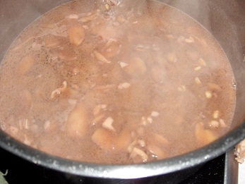 * Diminuer la températue et cuire encore une vingtaine de minutes. (Jusque quand les morceaux se décomposent)