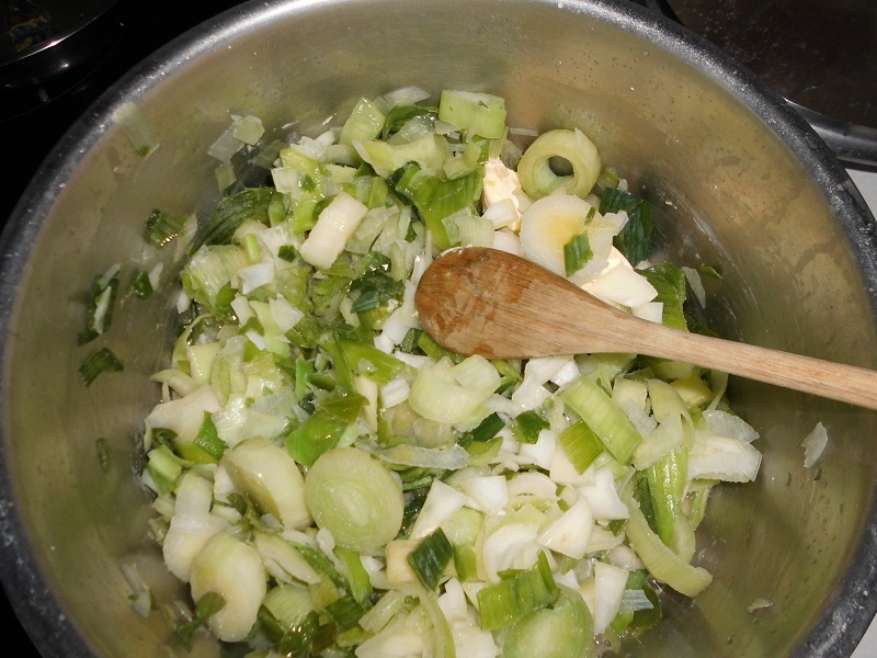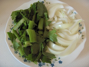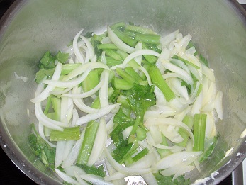 * Faire fondre les oignons et le céleri dans de la matière grasse.