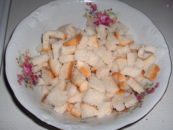Et, pourquoi pas des croûtons pour agrémenter vos salades ou potages. - Vous avez besoin d'urgence de croûtons ! Facile, il vous suffit d'avoir 2 tartines de pain (même frais) sous la main. Généralement, on conseille de les faire dorer à la poêle. Moi, je les fais frire à la friteuse. * Couper votre pain en cubes.