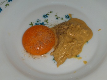 C'est tellement meilleur surtout pour les princesses (haricots). Ingrédients : - 1 jaune d'oeuf - 1 grosse cuillère de moutarde - huile - vinaigre - sel & poivre Préparation ; * Mettre dans une assiette : le jaune d'oeuf, la moutarde, sel & poivre.
