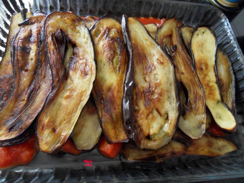 Dans le fond d'un plat à gratin , mettre de la tomate concassée, poser dessus vos tranches d'aubergines