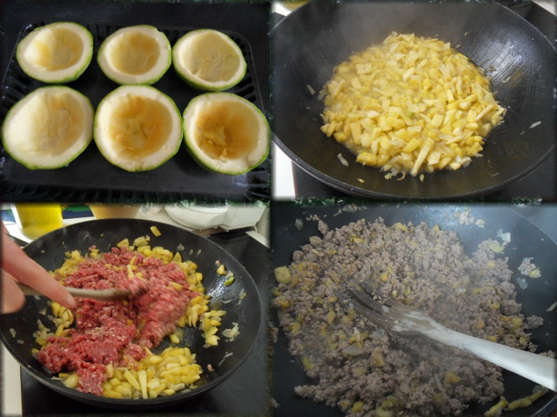 Evidez courgettes et tomates, faire revenir la pulpe, ajoutez la chair à saucisses , bien faire revenir, salez et poivrez