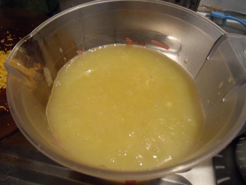 J'ai réussi à récupérer 570 G de jus, j'ai coupé quelques écorces en petits morceaux (facultatif )