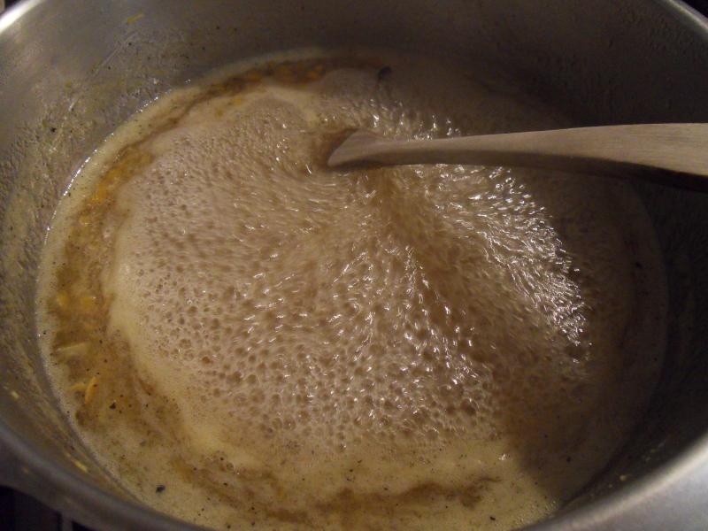 Laisser cuire au moins une heure à feu moyen, un peu de poivre, pas de sel .