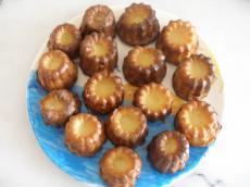 Pour 15 cannelés : 2 jaunes + 2 oeufs entiers, 1/2 litre de lait, 100g farine,250g sucre, rhum et vanille. Faire bouillir le lait avec vanille. Dans un récipient mélanger farine+oeufs+sucre, verser lait bouillant dessus et remuer.Metrre dans de petits moules. Enfourner à 240° pendant 20 mn et à 220° pendant 30 mn .Il faut qu'ils soient bien dorées. BON APPETIT FAIM