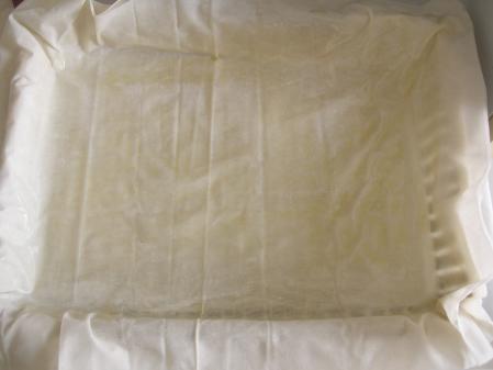 Foncer un plat rectangulaire avec de la pâte Filo ou feuilletée Mettre la préparation