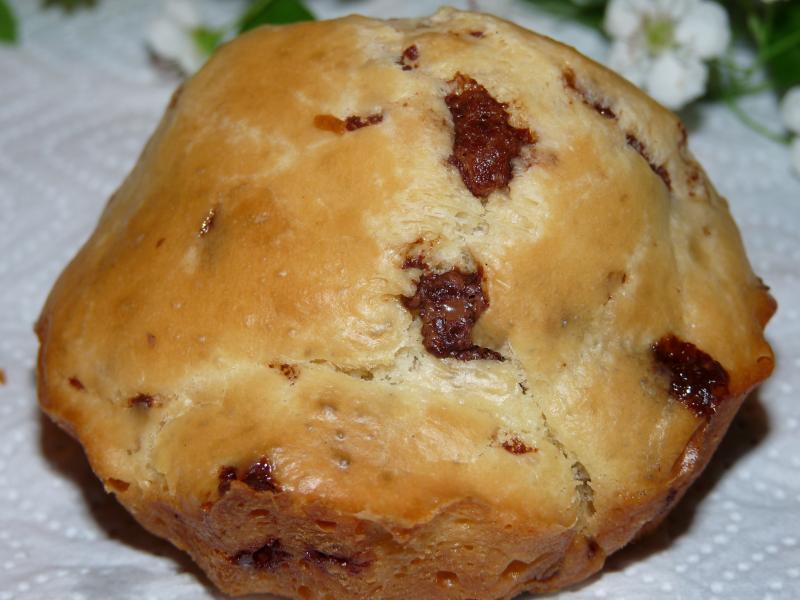 PREPARATION: REPOS:2 HEURES CUISSON:25 MINUTES INGREDIENTS: 1 oeuf 8 cl de lait 50 gr de beurre en morceaux 15 gr de levure de boulanger fraîche 230 gr de farine 40 gr de sucre en poudre 50 gr de pépites de chocolat 1 pincée de sel PREPARATION: 1) Faites chauffe le lait avec le beurre , le sucre et un pincée de sel, dans une casserole.Laisser refroidir. 2) Ajouter la levure émiettée dans un peu d'eau tiède, l'oeuf battu et la farine. 3) Pétrisser quelques minutes ( je l'ai fait avec une cuillère en bois) , puis incorporer les pépites de chocolat. Laisser lever 2 heures. 4) Préchauffer le four à 180° (th 6) Répartisser la pâte dans des moules , Enfourner pour 10 minutes, puis baisser la puissance de votre four à 150° et poursuiver la cuisson 10/15 minutes suivant les fours 5) Démouler aussitot! |
