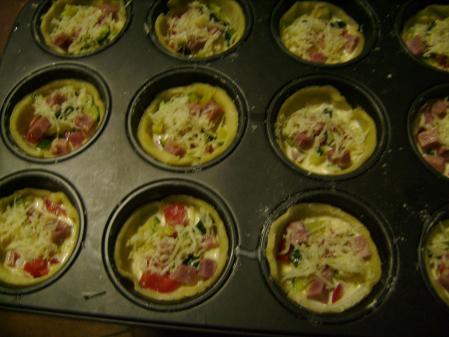 et au four une vingtaine de minutes dans un four préchauffer a 200°! Aprés refroidissement, je découperai en carré, et voici un accompagnement appéro , en plus des minis tartelettes mettrai photo apres cuisson et decoupage! fini de cuire, decoupe