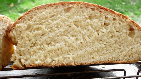dans la soirée, je me suis fait le pain sans petrissage, oups....ai pas résisté à le gouter chaud, à la sortie du four!!! ouh lala!! les kilos, mais tant pis lol