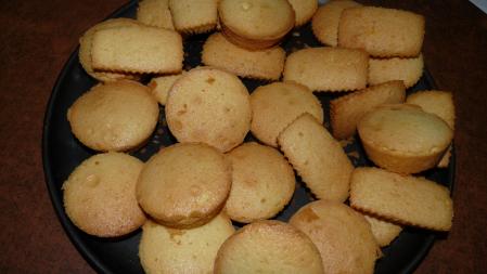 Comme je l'ai dit , je n'ai pas de moule à madeleine aussi, j'ai mis la pâte dans mes moules rectangulaires et de muffins!